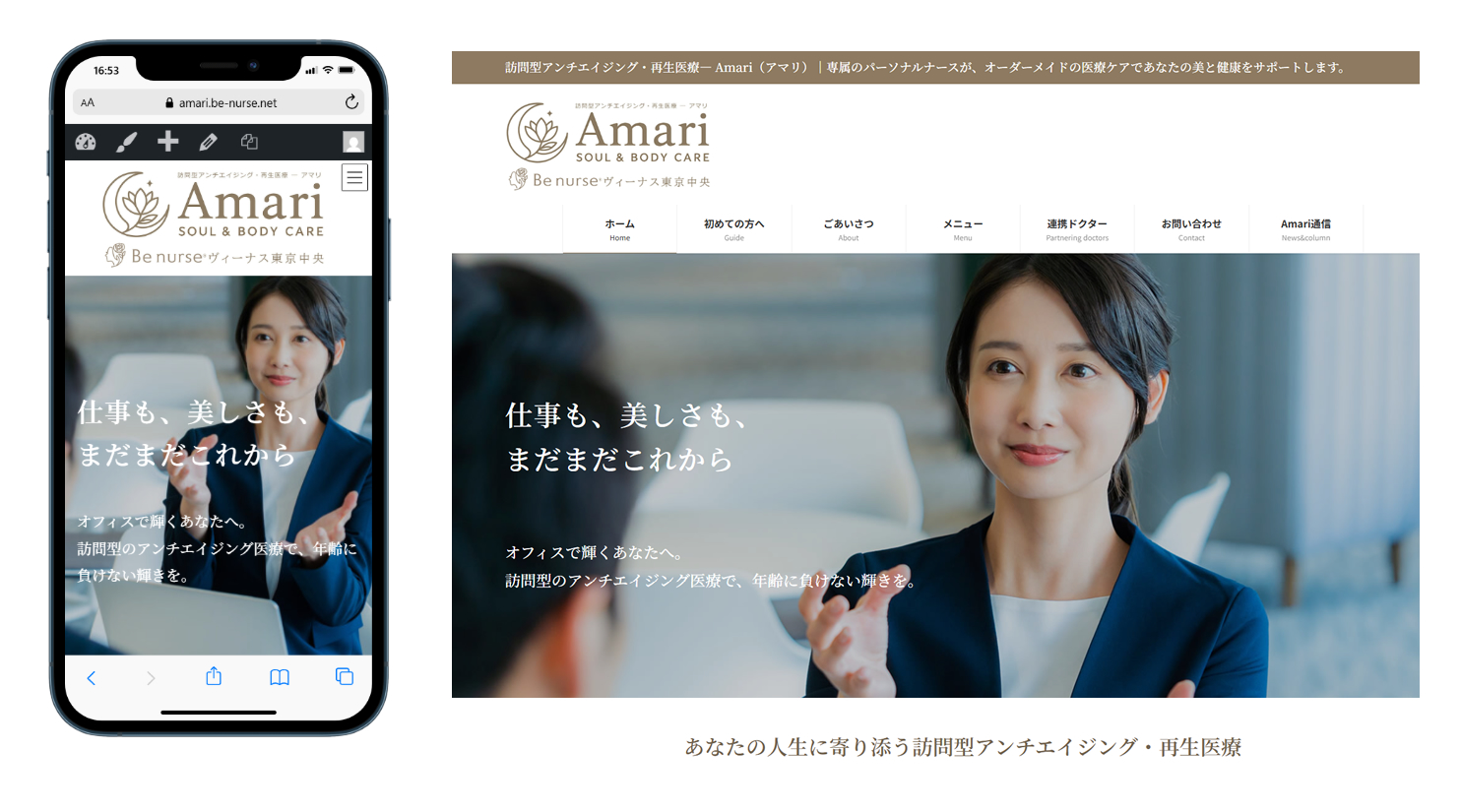 「美容医療による独立看護師の育成」を目指すアカデミー「ヴィーナス(Be nurse)」二期生、高橋真理さん(看護師・健康経営アドバイザー)が、自身のブランド「Amari(アマリ)/ヴィーナス東京中央」のホームページを公開しました。