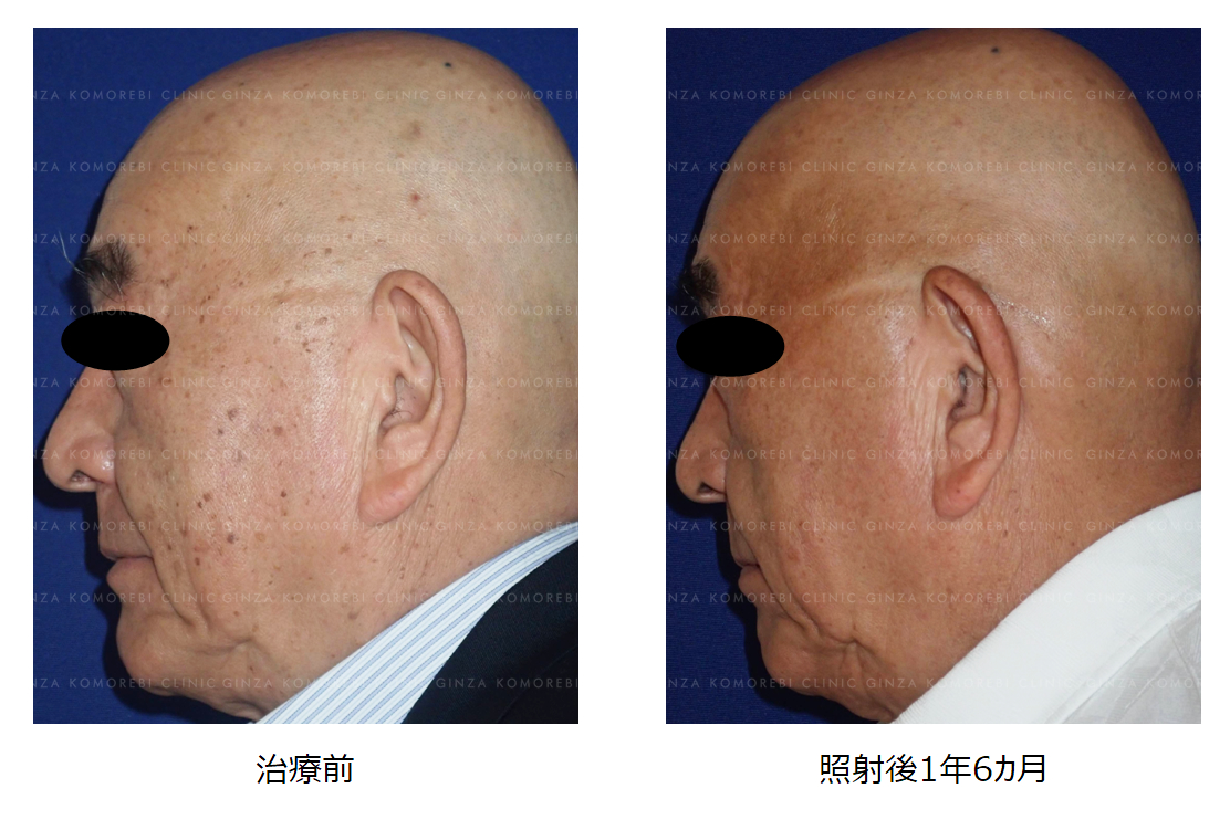 本症例では、長年にわたって蓄積してきたイボタイプのシミ(脂漏性角化症)を、1回の治療でまとめて除去しました。