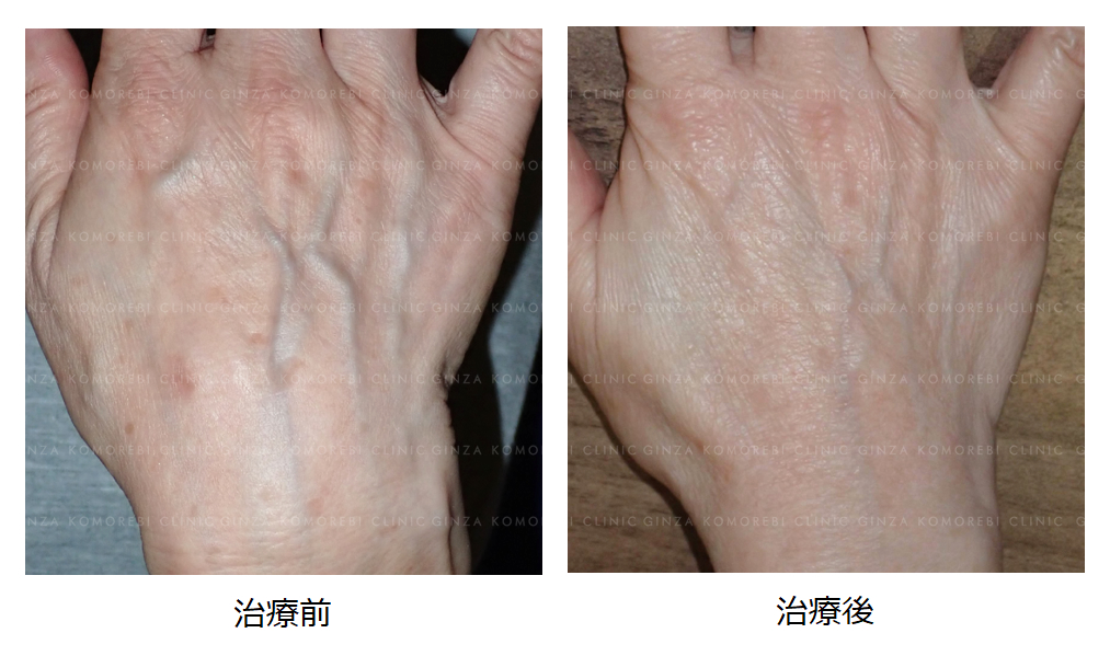 また、ノーリス(Nordlys)はシミの改善だけでなく、副次的にコラーゲン生成を促す効果も期待できるため、治療後には手背の皮膚がふっくらとした印象になっています。