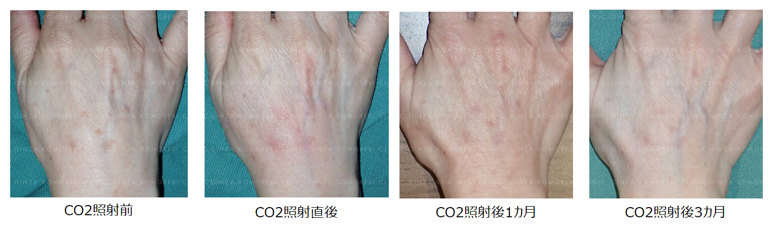 | 治療内容 | ノーリス(Nordlys)&炭酸ガス(CO2)レーザーによる手背のシミ・クスミ治療 |