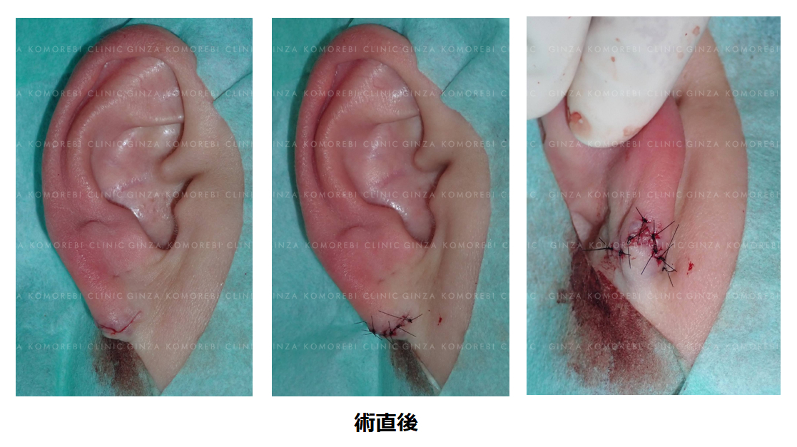単に裂けた皮膚を縫い合わせるだけでは、自然で美しい耳たぶの曲線を再現することは困難です。