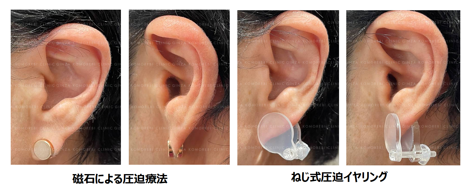基本的に、耳垂裂の手術後は、一般的な手術と同様に軟膏塗布やマイクロポアによるテープ固定などを行います。ただし、術後創部にケロイド兆候を認めたら場合は、下記のような圧迫療法を行う場合もあります。