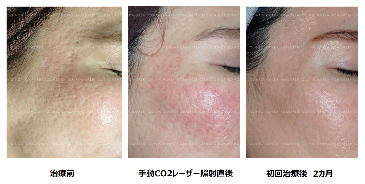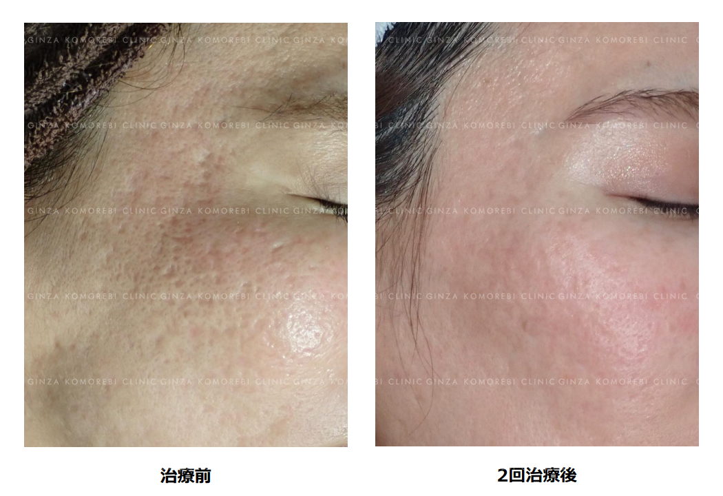 本症例の患者さまは、他院で炭酸ガスのフラクショナルレーザーを10回以上受けられていましたが、当院での2回の治療後にご満足いただくことができました。