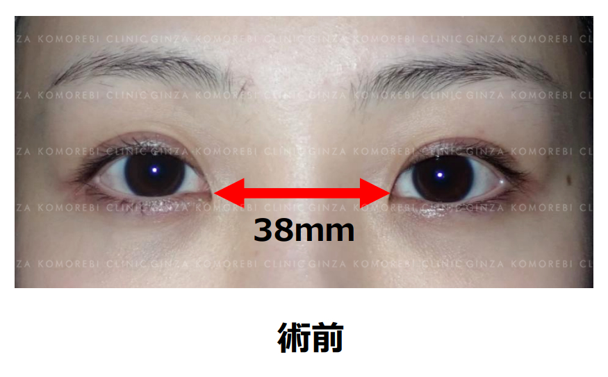 日本人成人の内眥間距離(ないしかんきょり:目頭と目頭の間の距離)は、一般的に30mm〜34mm程度といわれています。