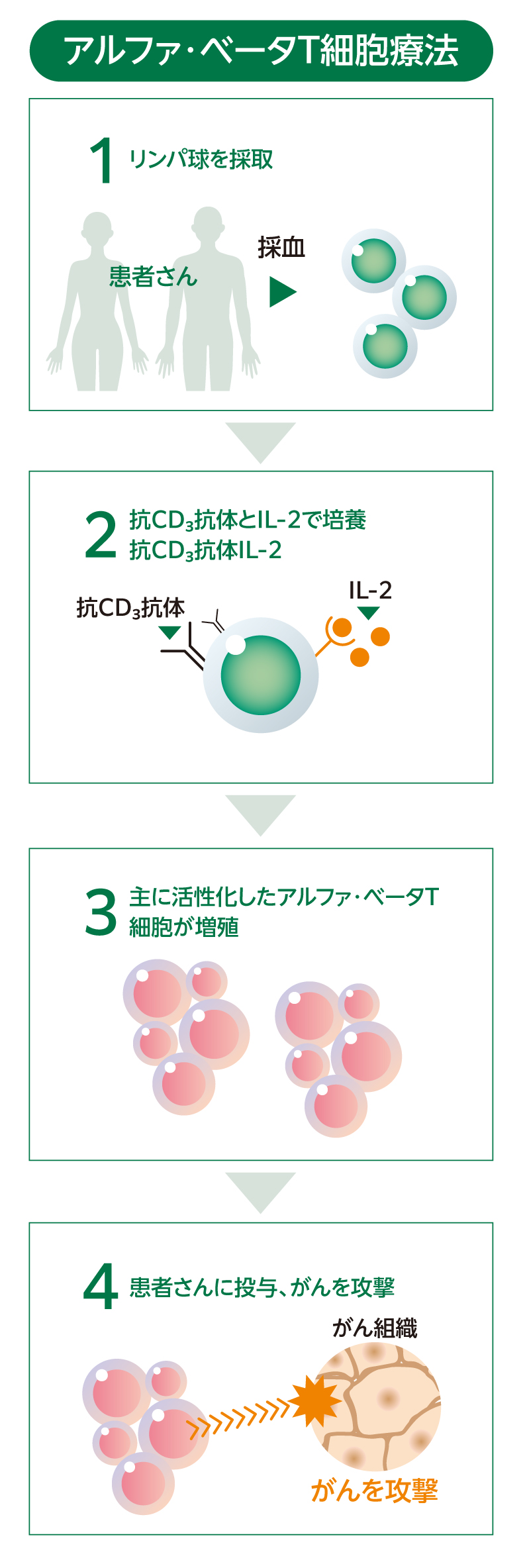 この細胞を活性化・増殖させて体内に戻すことで、免疫全体のバランスを整え、体が本来持っている防御力を取り戻すことを目的とするのが「αβT細胞療法」です。