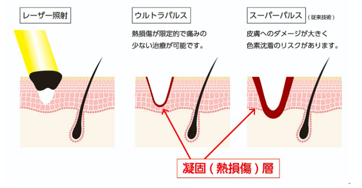 特徴① ウルトラパルスのピークパワーにより、肌に優しい治療ができる