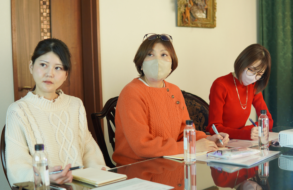 はじめにヴィーナス本部より、今後の活動に関するお知らせとともに、受講生がそれぞれの活動地域でセミナー開催を行うための具体的なスライド資料の内容とその告知チラシを共有しました。
