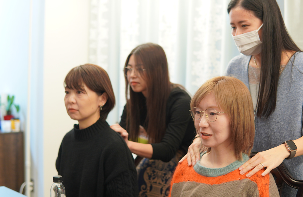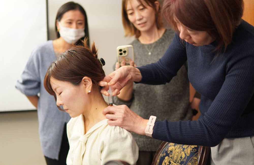その後、実際の手技指導を行い、施術する側・受ける側の双方を体験しました。