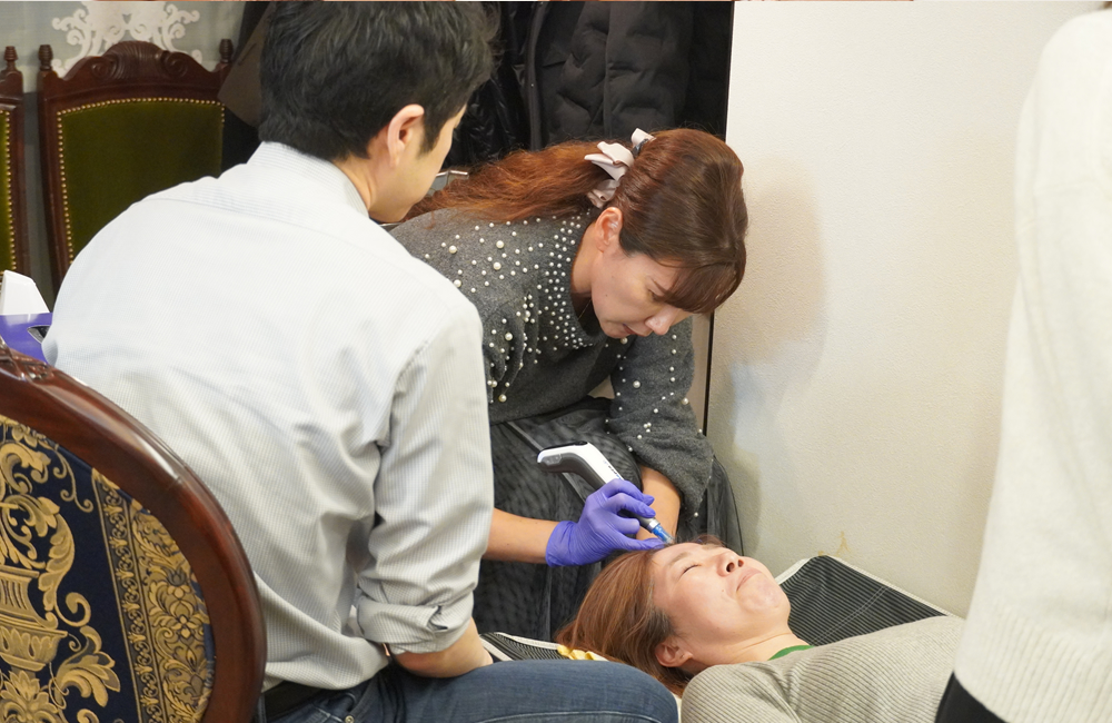 その後、希望者向けに補習研修施「薄毛治療における頭皮へのダーマペン施術」を実施しました。