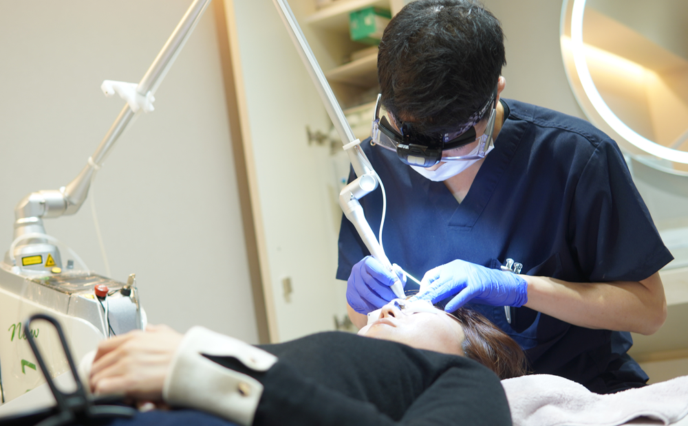 さらに研修の後半では、西嶌暁生院長による「ほくろ・シミのレーザー除去」のデモンストレーションを実施。